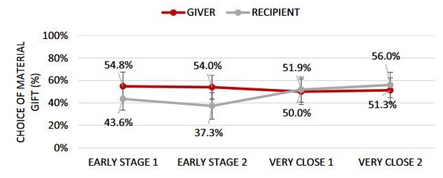Likelihood to choose an experiential gift depending on social closeness