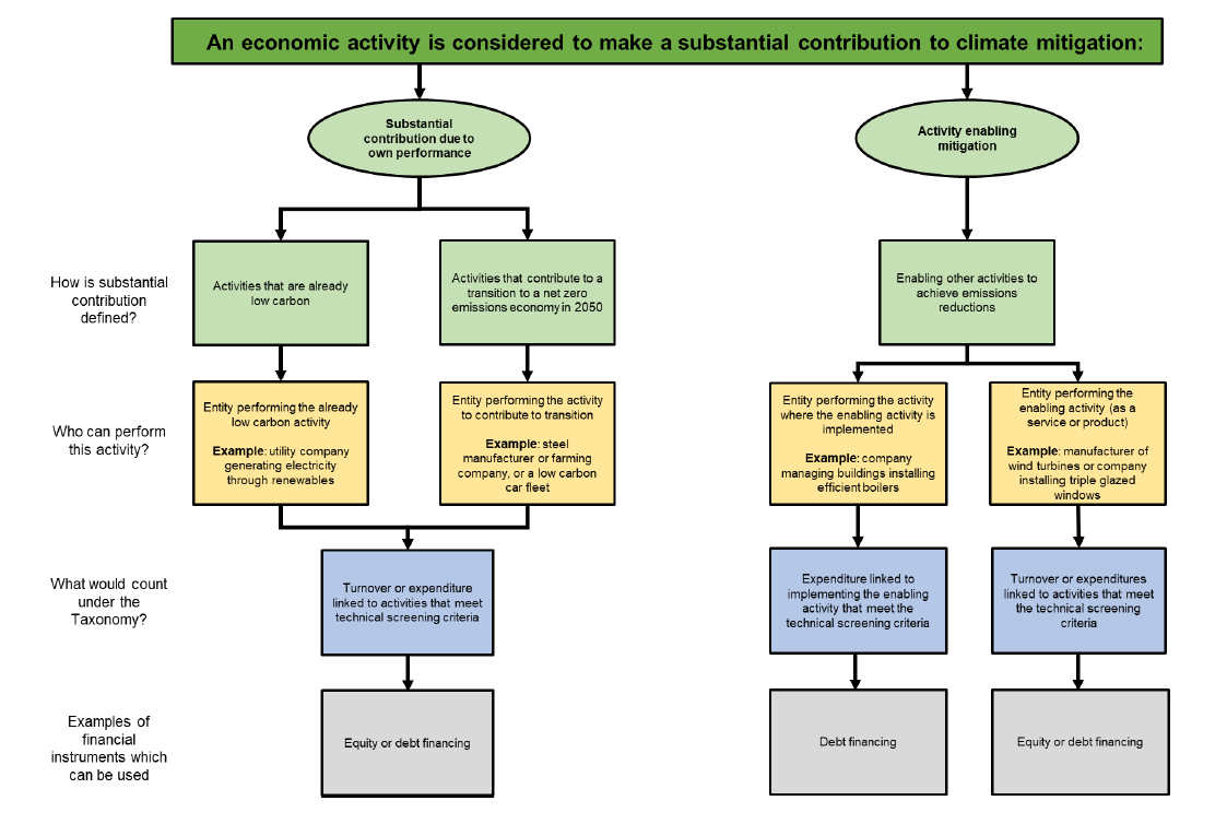 The chart below shows how an economic activity can be assessed for its contribution to climate change mitigation.