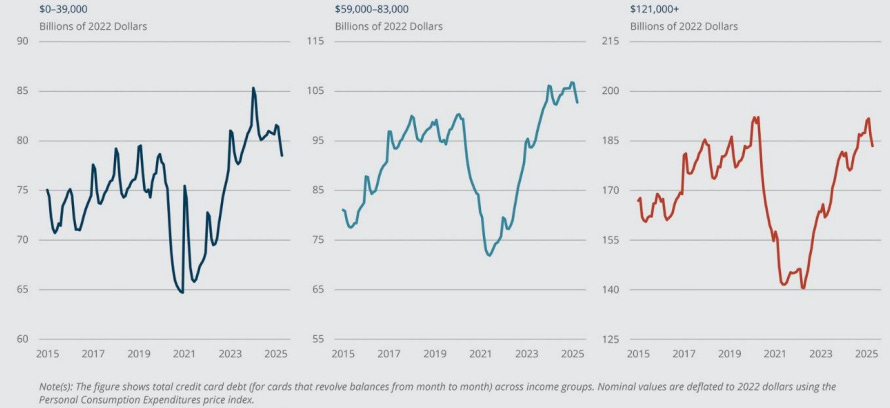 What this means is that in another cost-of-living squeeze from tariffs and a softer job market, high-income households again have enough firepower to bail out the US economy and continue their consumption as if nothing really happened. Meanwhile, middle America and poor Americans will once again have to cut back their consumption or increase their debt to make ends meet. That is the same pattern as in 2022 and 2023.