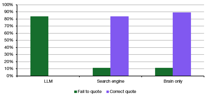 This is extremely interesting. Even though you apologize for the small sample size involved, that complete lack of recall amongst the LLM group is indeed startling. I think it might be akin to using pen and paper, or even typing into a laptop, to take notes instead of just letting voice recognition transcribe and summarize a management meeting; a bit of work is key to retention and learning.